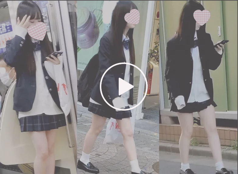 【電車痴かん】顔出し制服JK★ポニテ&眼鏡★紐パンほど...